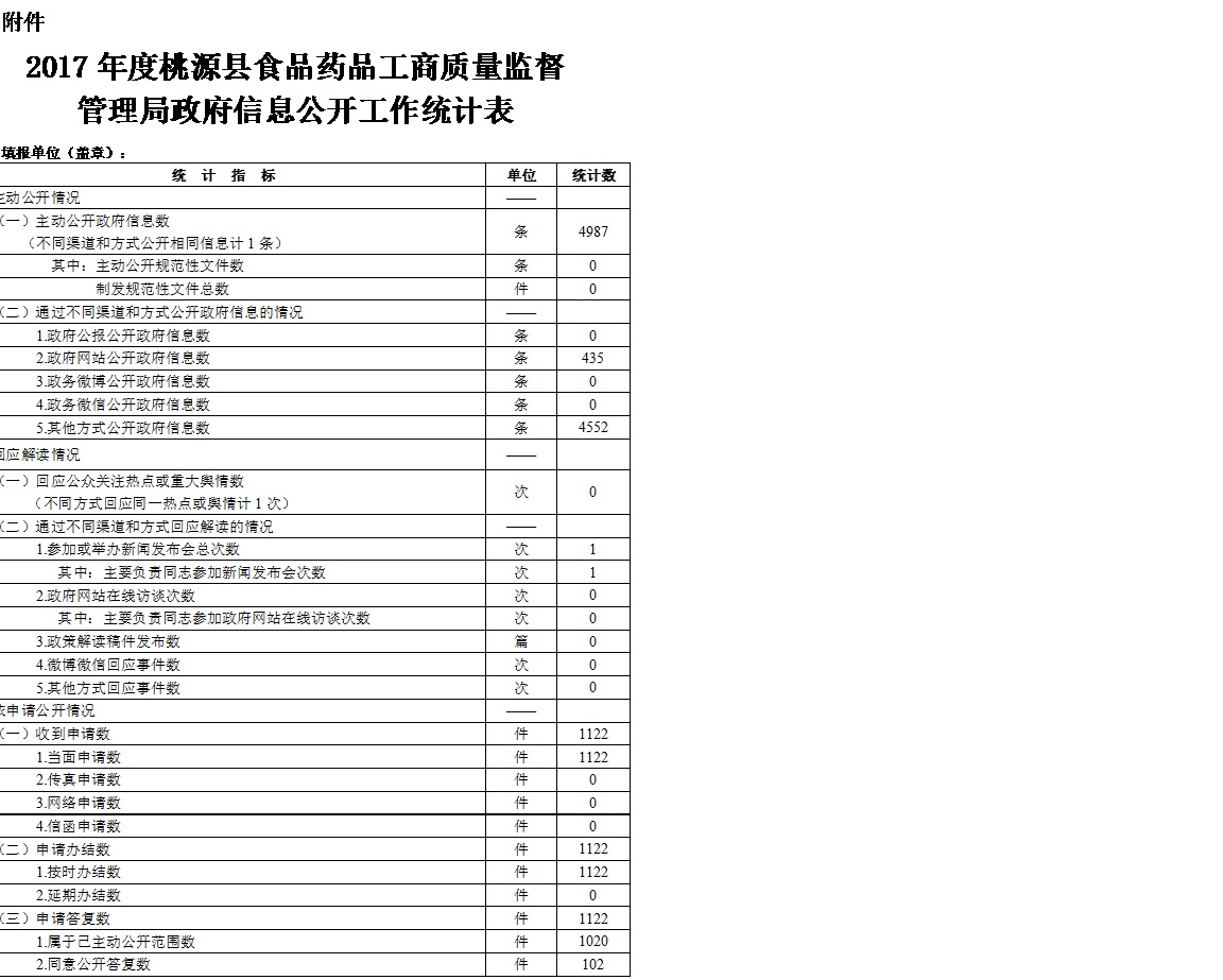 本地本单位2017年度共受理政府信息公开申请1122件,均已及时回复。