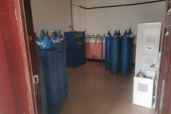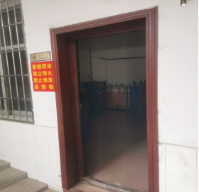 存在的隐患:1、制氧机房设置在院食堂旁边,制氧机房两面墙体临近食堂和厨房,厨房使用管道燃气,未安装燃气报警器和紧急切断阀。2、制氧机房内存放十多瓶医用氧,无专人看守,机房门未上锁,机房内无必要的消防设施等。