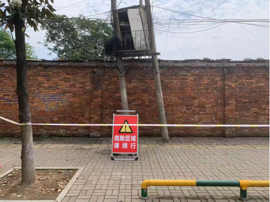存在的隐患:莲花湖社区荷花路人行道上(原漳江镇宿舍附近)三根弱电杆底部断裂。
