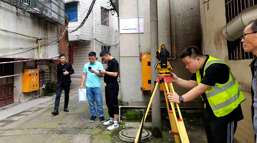 房屋隐患检测现场,住保中心工作人员联合第三方检测机构湖南博联检测集团有限责任公司,运用全站仪、钢筋扫描仪、砂浆贯入仪、砖回弹仪、混凝土回弹仪等专业仪器对漳江街道聚贤小区等几栋存在重大安全隐患的房屋做了安全隐患检测。技术人员对于房屋的安全性能和存在的问题做出准确的评估和判断,以便及时采取相应的维修、加固或拆除等处理措施。