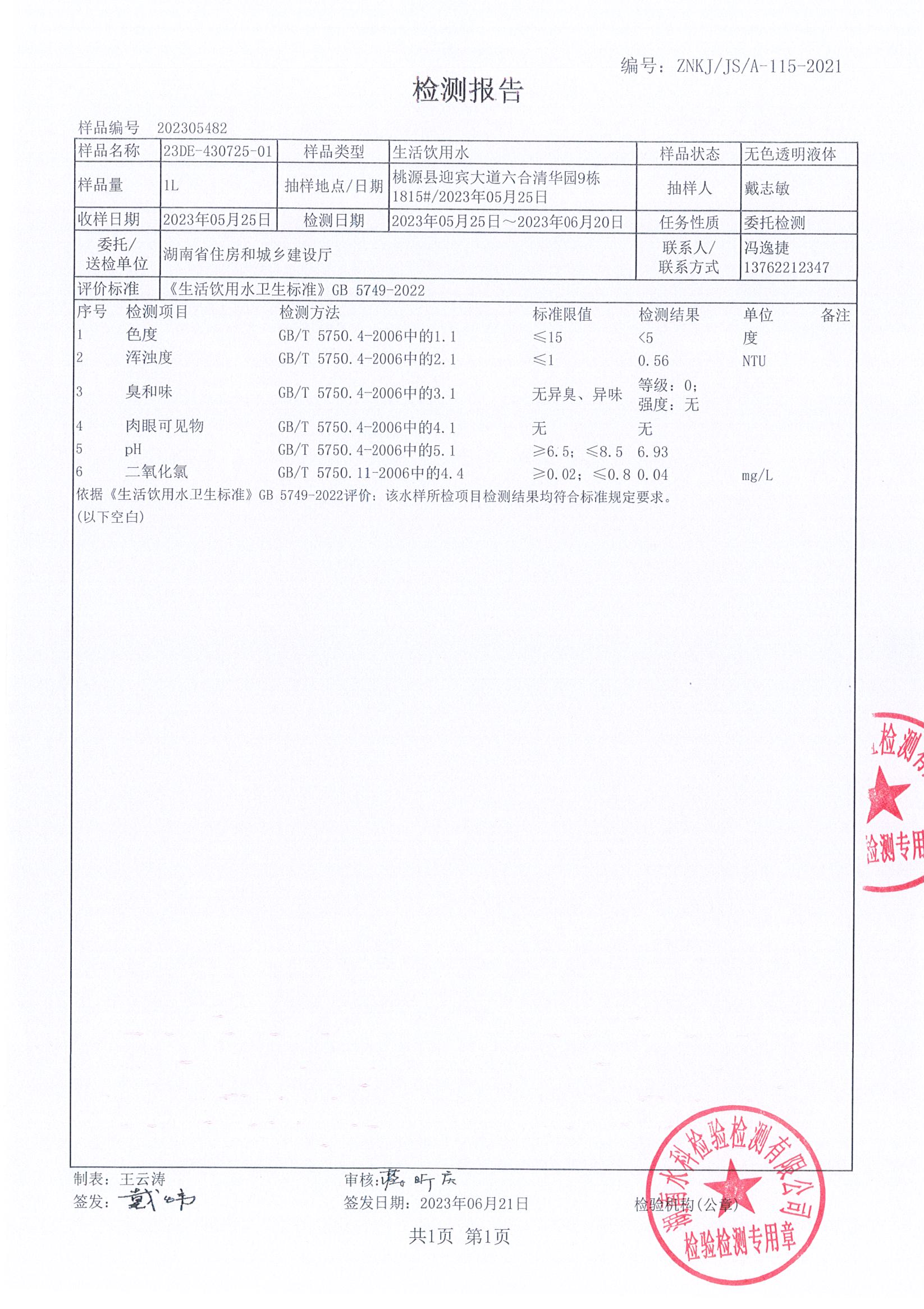 省厅委托省里检测机构对桃源县城4个取水点进口水92个项目检测报告(清华园)