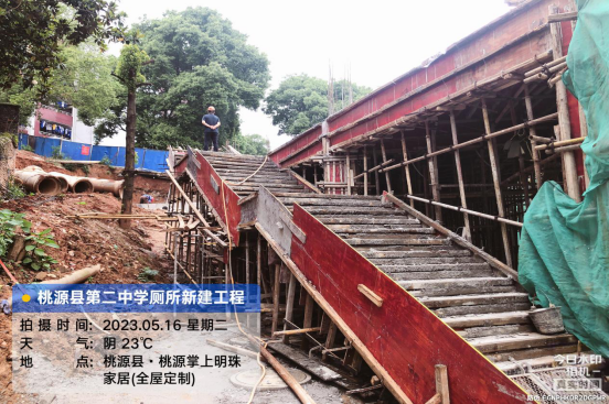 存在的隐患:湖南大象山园林建设工程有限公司承建的桃源县第二中学厕所新建工程楼梯临边无防护。