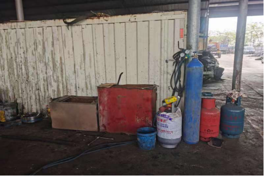 存在的隐患:液化气罐和氧气罐安全距离不足5米。
