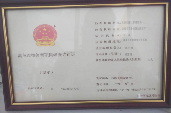 存在的隐患:高危体育经营许可证已过期,需要续证,消防器材需要进一步添置完善。