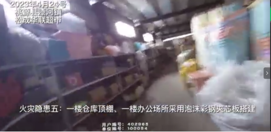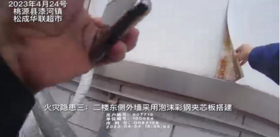 存在的隐患:一楼营业厅未设置排烟设施,二楼营业厅未设置排烟设施;二楼东墙外侧采用泡沫彩钢夹芯板搭建;一、二楼营业厅消防应急照明、灯光疏散指示标志设置不符合标准;一楼仓库顶棚、一楼办公场所采用泡沫彩钢夹芯板搭建;营业厅与仓库未进行有效防火分隔。