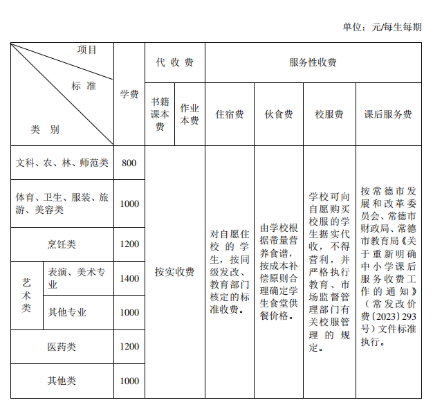 4.课后服务费。按常德市发展和改革委员会(常德市国防动员办公室)、常德市财政局、常德市教育局《关于重新明确中小学课后服务收费工作的通知》(常发改价费〔2023〕293号)文件标准执行。