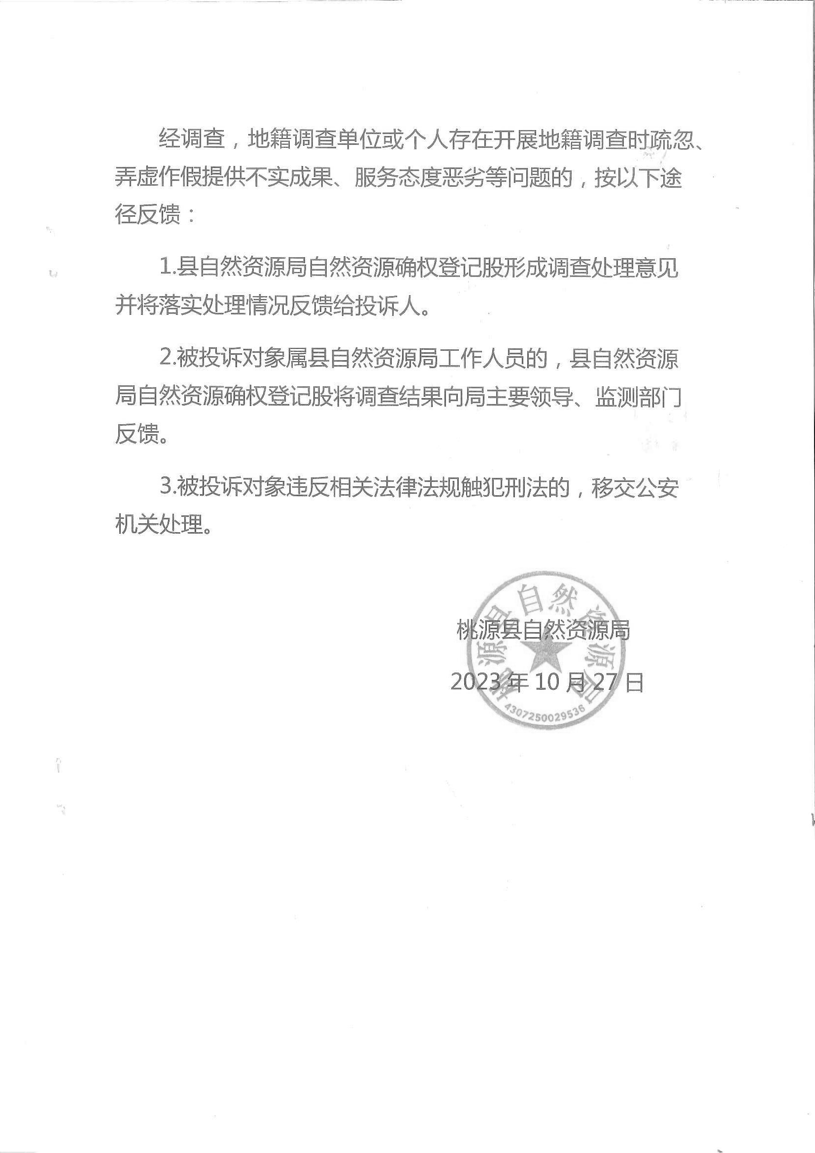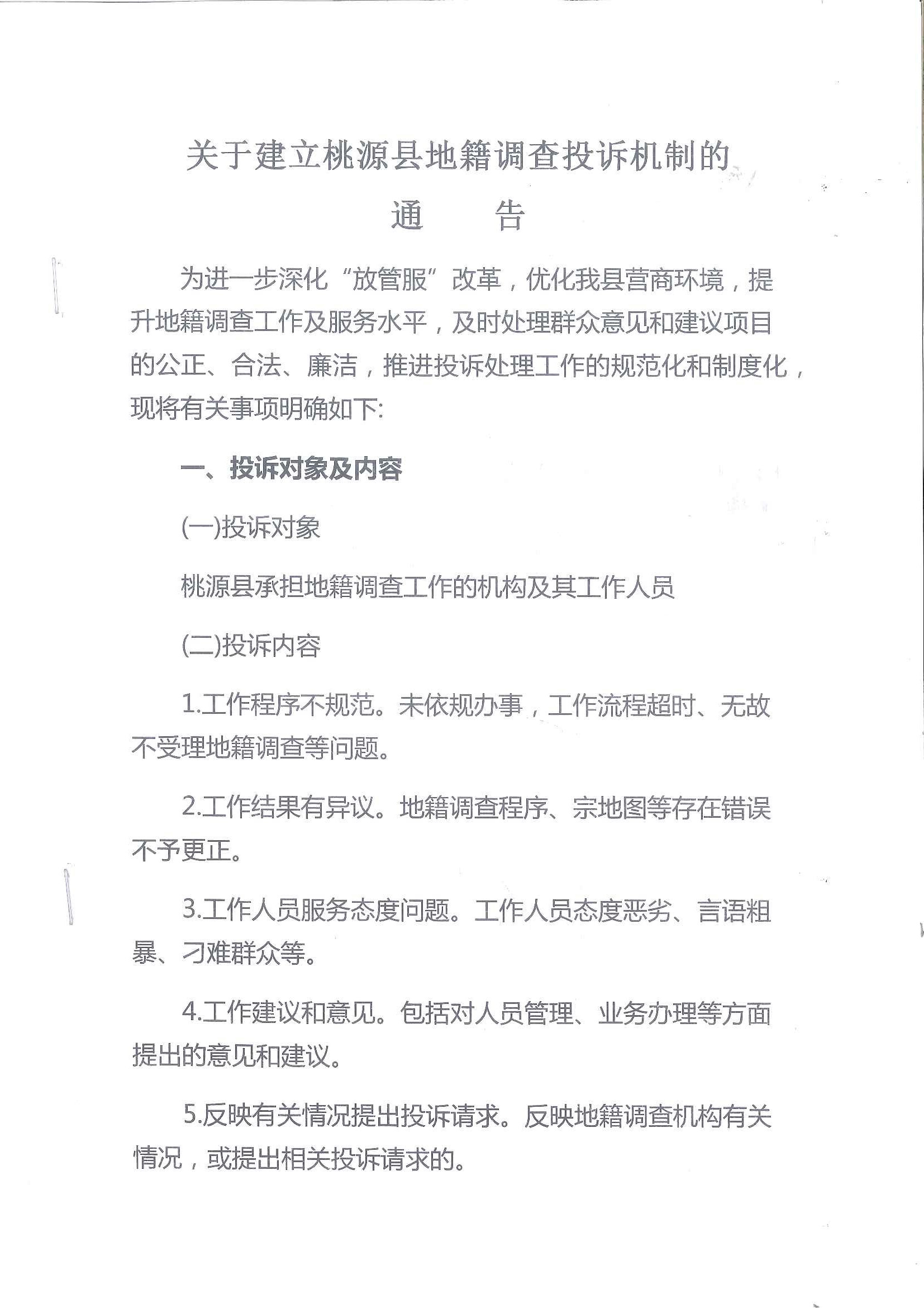关于建立桃源县地籍调查投诉机制的通告