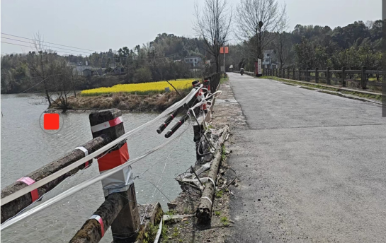 存在的隐患:泥窝潭至一甲城道路K25.072处的仙人溪桥护栏缺损。
