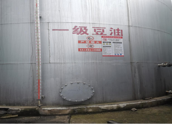 存在的隐患:食用油储罐有限空间警示标志未设置在出入口位置。