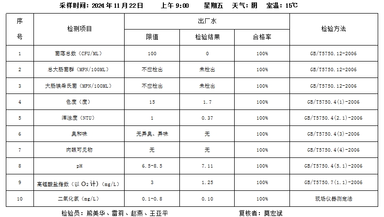 桃源县城区2024年11月22号水质检测报告