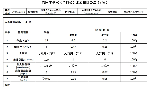 管网末梢水水质报告(2024.11.25)