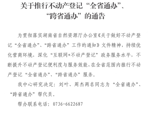关于推行不动产登记“全省通办”、“跨省通办”的通告(帮代员)