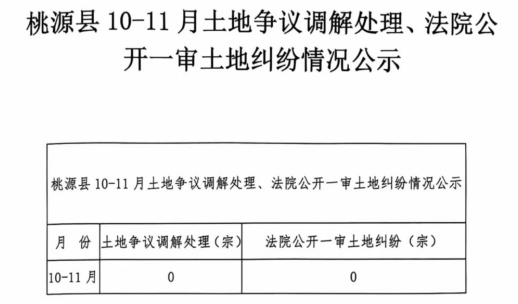 2024年桃源县10-11月土地争议调解处理、法院公开一审土地纠纷情况公示