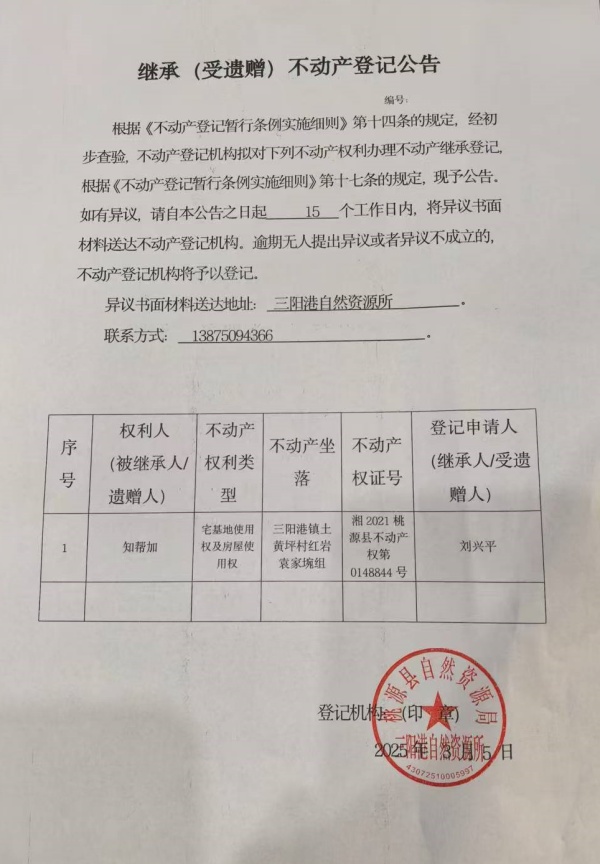 不动产继承登记公示-知帮加