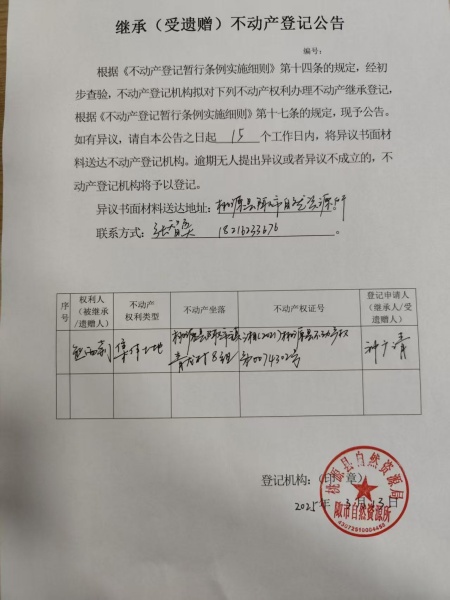 不动产继承登记公示-熊西莉