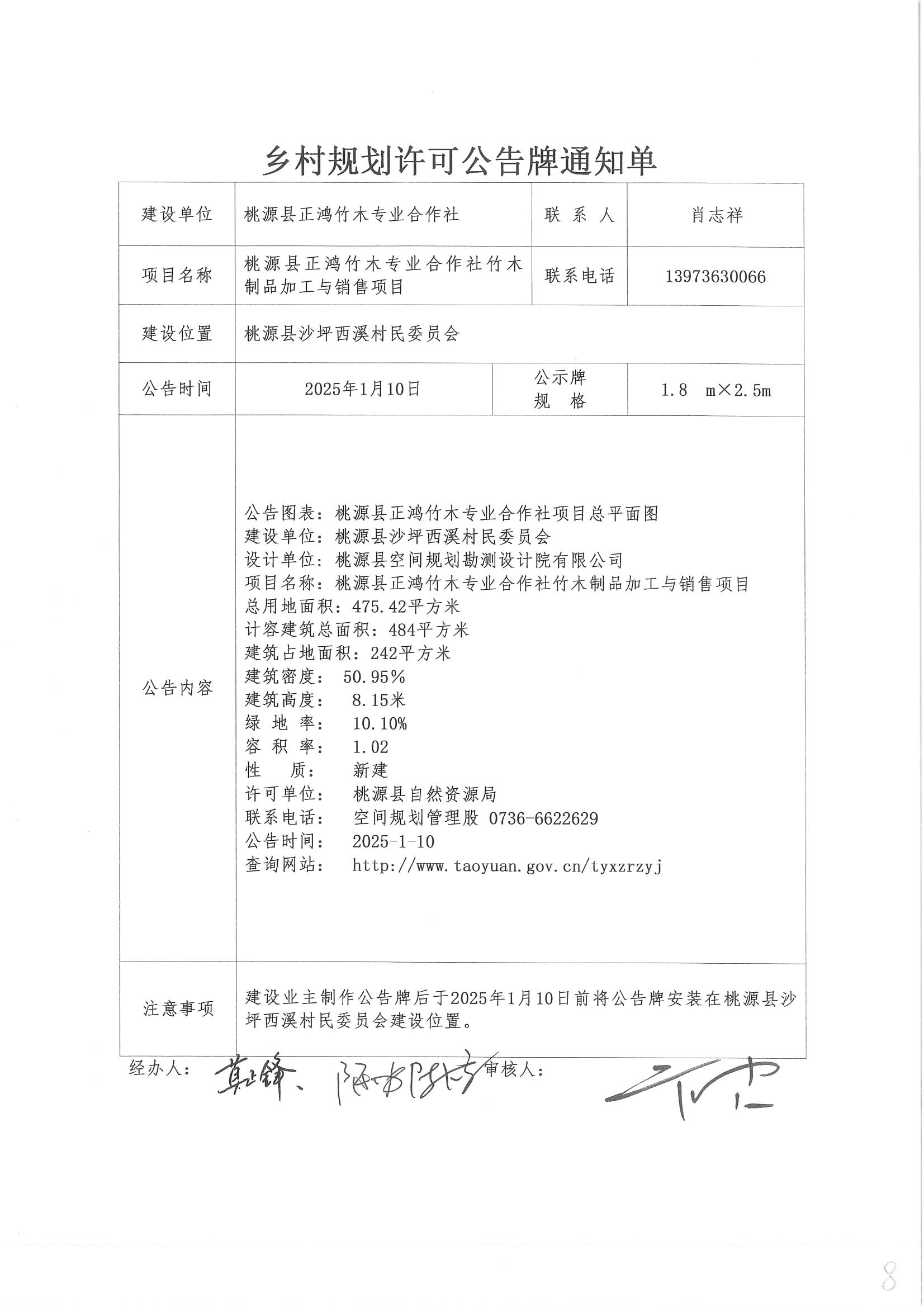 乡村规划许可公告牌通知单-桃源县正鸿竹木专业合作社