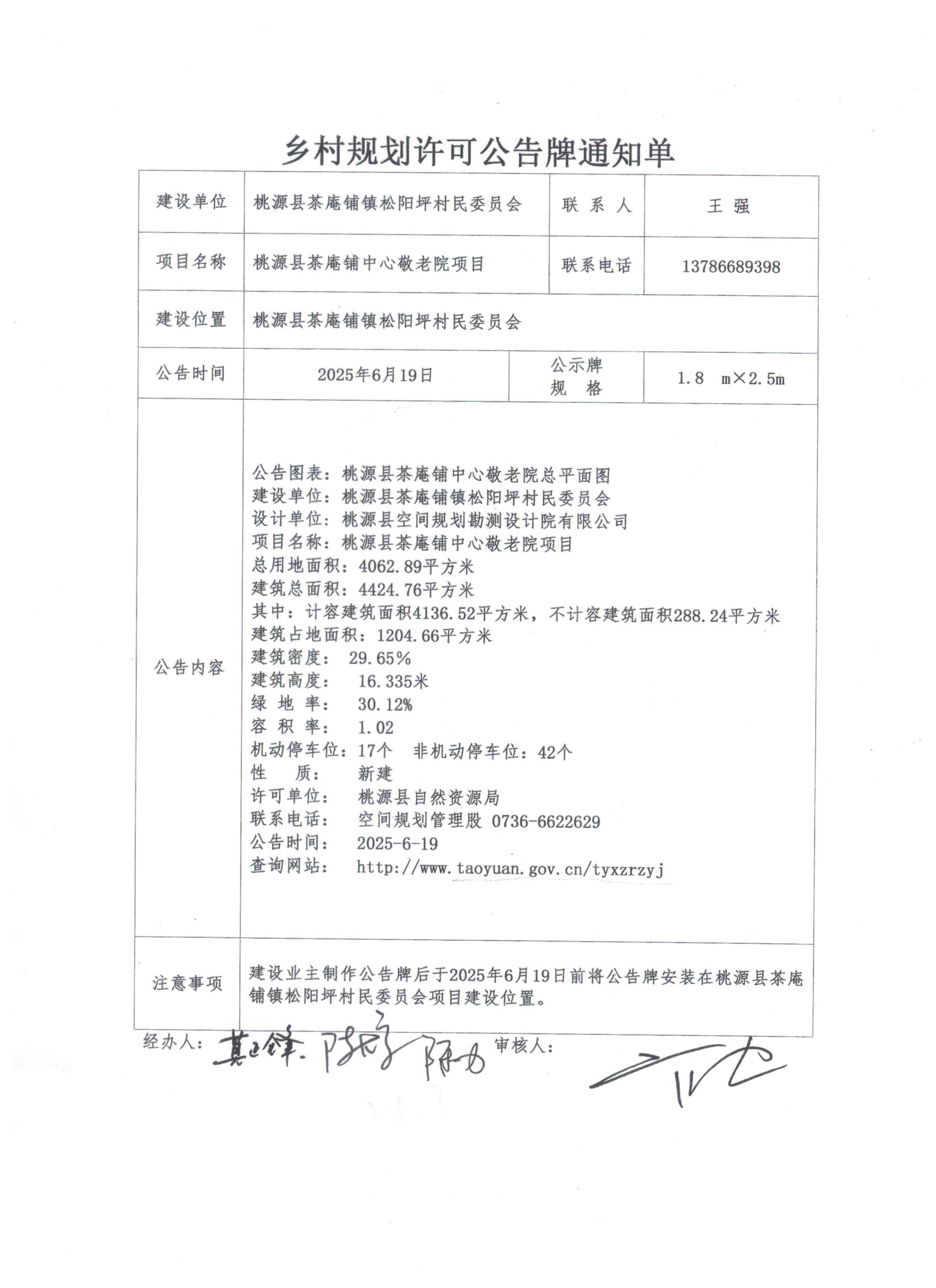 乡村规划许可公告牌通知单-桃源县茶庵铺中心敬老院项目