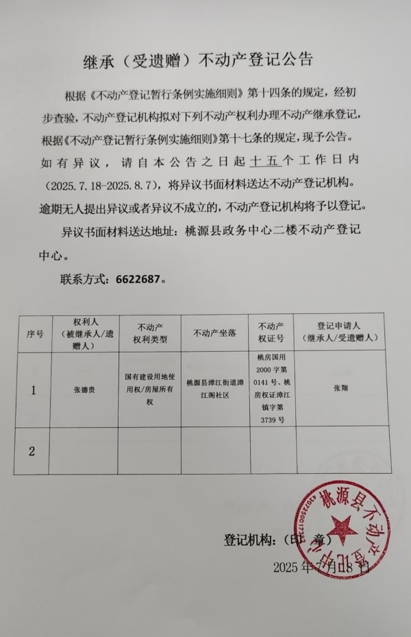 不动产继承登记公示-张德贵