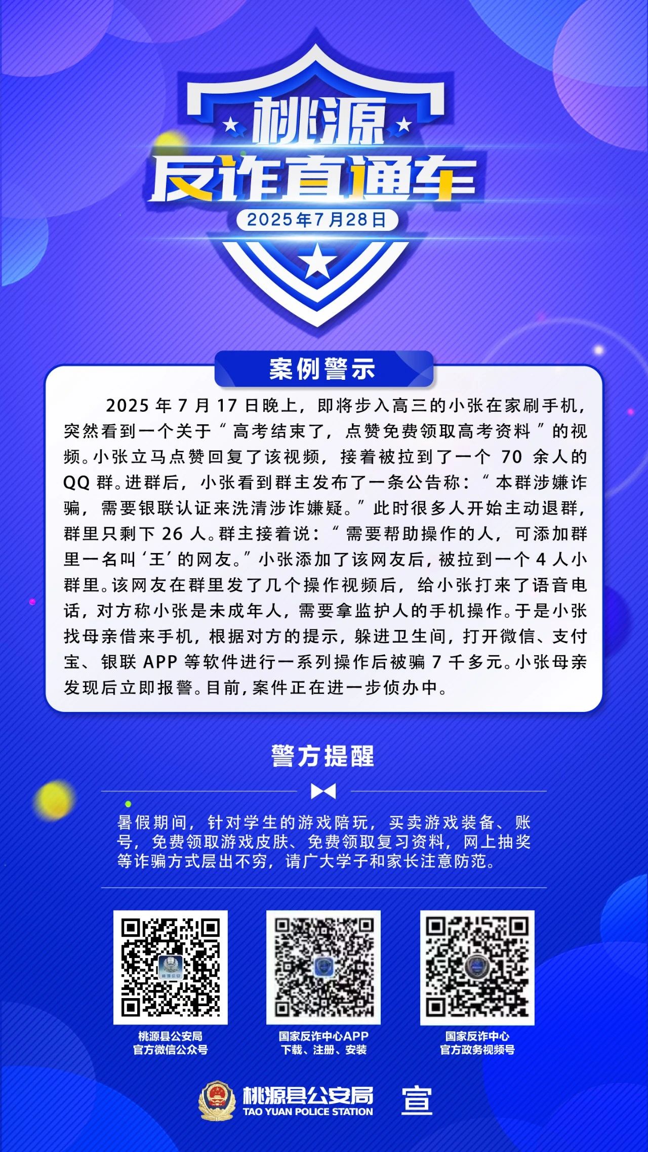桃源反诈直通车 不轻信、不转账、不上当!