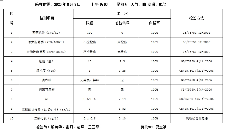 桃源县城区2025年8月8日水质检测报告