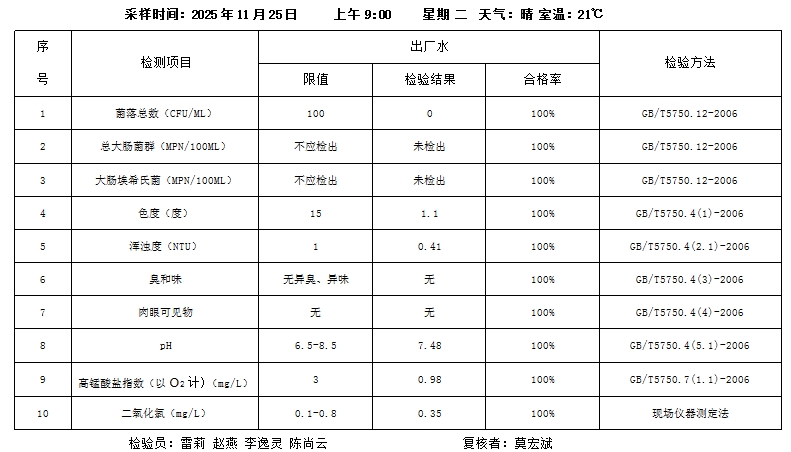 桃源县城区2025年11月25日水质检测报告
