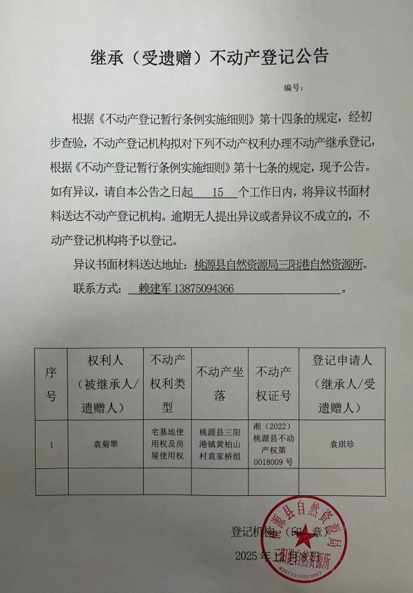不动产继承登记公示-袁菊翠