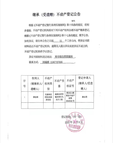 不动产继承登记公示-龚志林