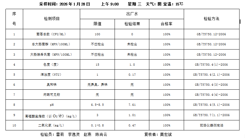 桃源县城区2026年1月28日水质检测报告