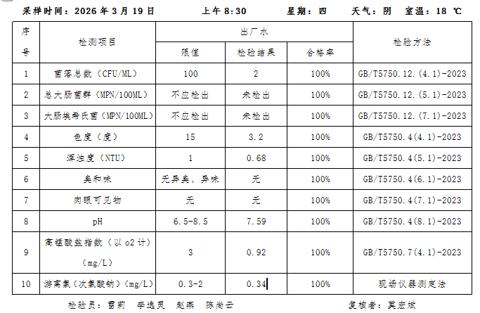 桃源县城区2026年3月19日水质检测报告